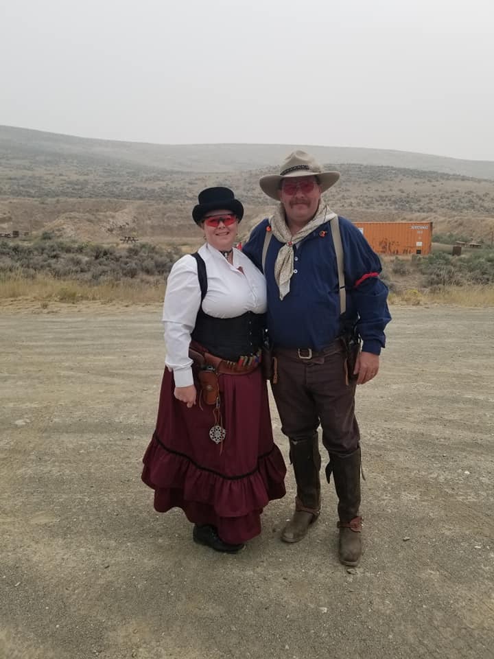 Avalanche Amy and Glacier are a cowboy action shooting couple from Baker City, Oregon. We have been shooting CAS since 2017. We decided to start shooting after watching Jedi Knight’s Cowboy Action YouTube channel. We then attended a local match with the Virtue Flat Shootist Society. We initially went to watch but were soon handed guns and convinced to give it a try. Needless to say we were immediately hooked. As our aliases suggest Avalanche Amy is quick and fast and well … Glacier is just slow.